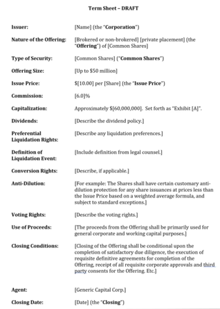 대출 약정서로 돌아와서, 돈을 빌려줄 사람을 찾아다니는 과정에서 수 백 페이지 계약서를 들고 다닌다면 아무도 안 볼 것이기 때문에, “Term Sheet”이라고, 10페이지 정도에 주요 대출 조건을 요약한 서류를 들고 다니는데, “우리 이렇게 빌리려고 하니까 한번 검토해줘~ 이거로 협상하자” 정도로 쓰입니다.