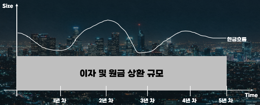 물론 예상 현금흐름에 맞춰서 상품 설계를 다르게 하면 불가능할 건 없습니다만, 프리랜서보다 안정적인 직장이 있는 사람이 대출을 많이 받을 수 있는 것과 같은 맥락입니다. 또, 기업이 보유하고 있는 자산들은 파산 시 매각을 통해 현금을 회수할 수 있기 때문에, 통신타워 업체 같이 판매가 쉬운 유형자산이 많을수록 대출의 한도를 늘릴 수 있고 비교적 낮은 금리로 자금을 조달할 수 있습니다.